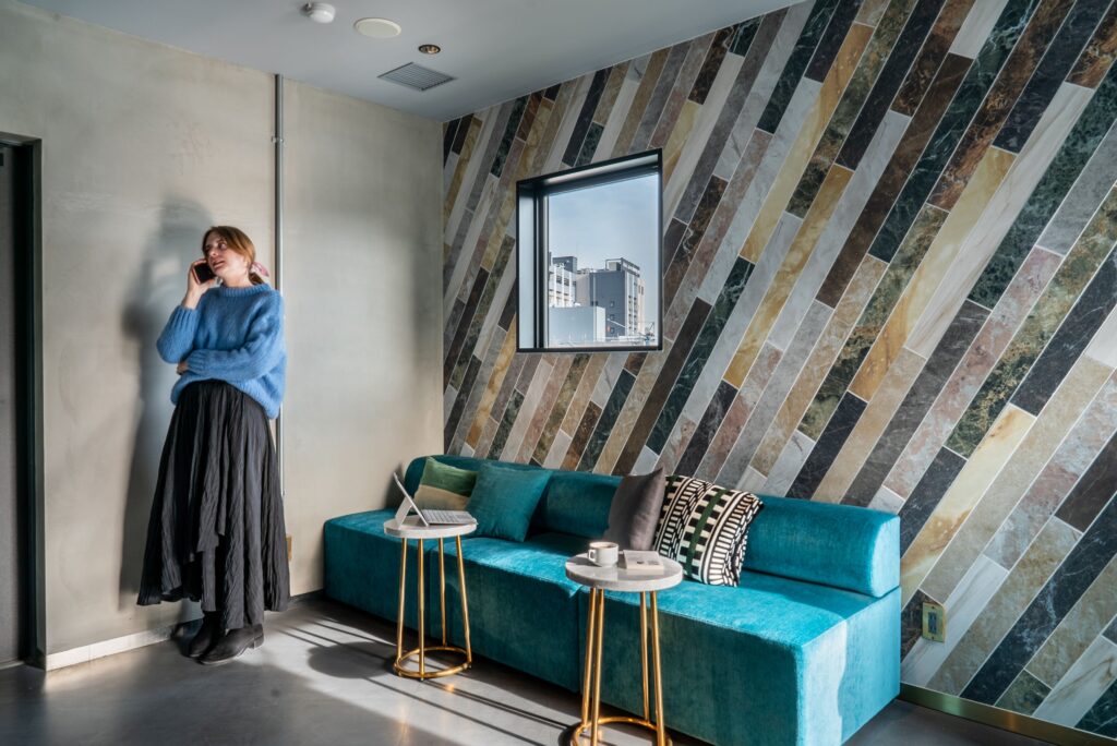 JR川崎駅から徒歩7分に位置しており、Z世代に人気のデジタルライフスタイルホテル「slash川崎」に併設される.andwork川崎は、クリエイティブなデジタル空間の1Fラウンジ、緑豊かな1F屋外テラス、空を感じる開放的な10Fルーフトップテラスの3つのエリアで構成された、まさに都会のオアシス。