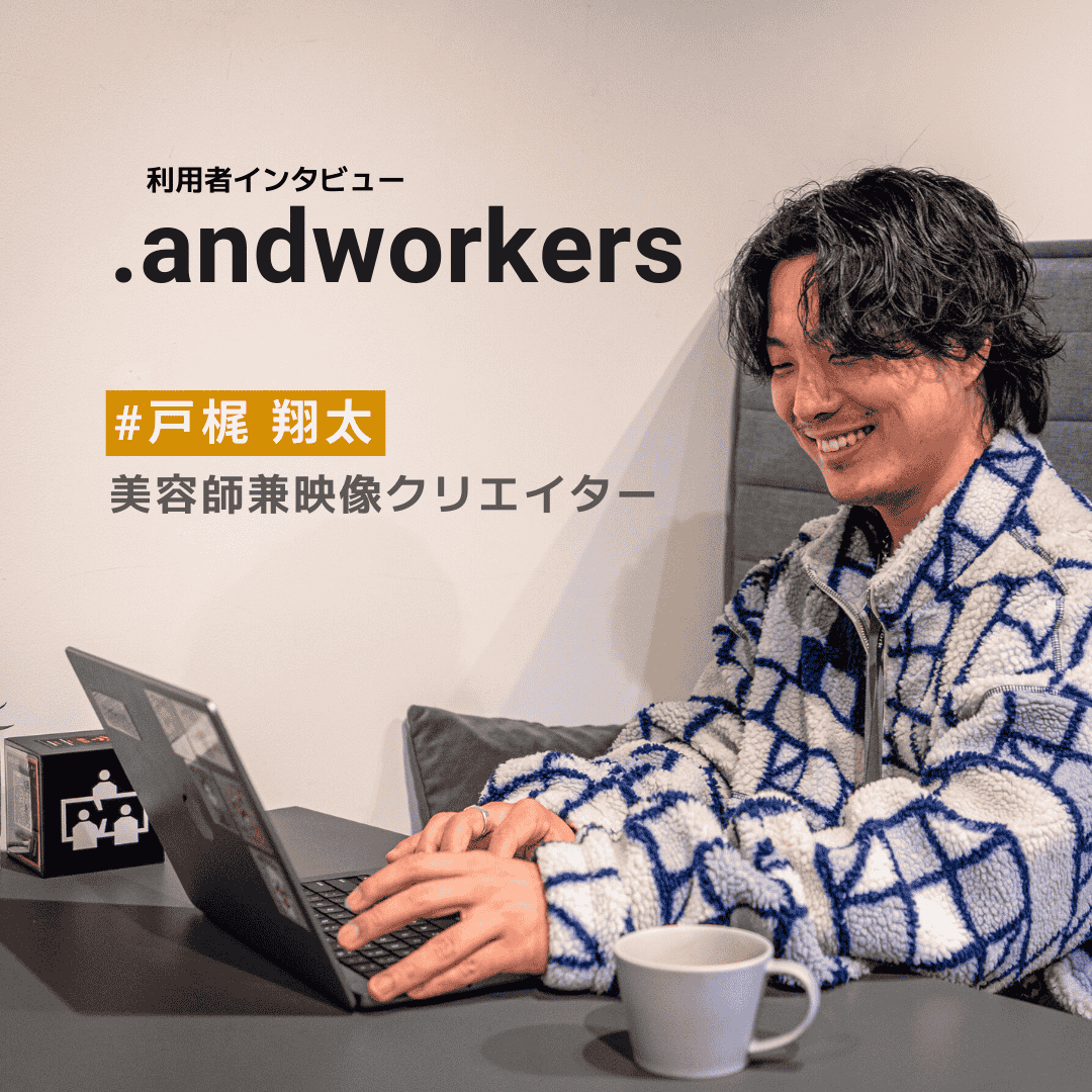 今回は、.andwork渋谷を利用する戸梶 翔太さんに美容師から映像クリエイターへ転身したきっかけや.andworkを活用する理由、その魅力などについてお話を伺いました。